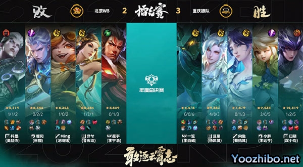 第二局,狼队这一局放缓运营节奏,不断打拉扯。WB 难以打动狼队前排,归期的关羽持续进行 poke,WB 无法阻挡关羽的进攻。重庆狼队扳回一局,本局 MVP 为狼队归期的关羽。
