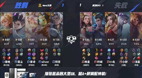 第三局:开局三分钟就给Hero的澜拿到了双杀,四分钟又一波团战,落尘的澜直接越二塔强杀,Hero二换四;这时候澜的经济全场最高,之后虽然被击杀掉了几波,但是公孙离已经发育起来了;Hero连追两分!本局MVP为Hero久竞_落尘(张世杰)澜!