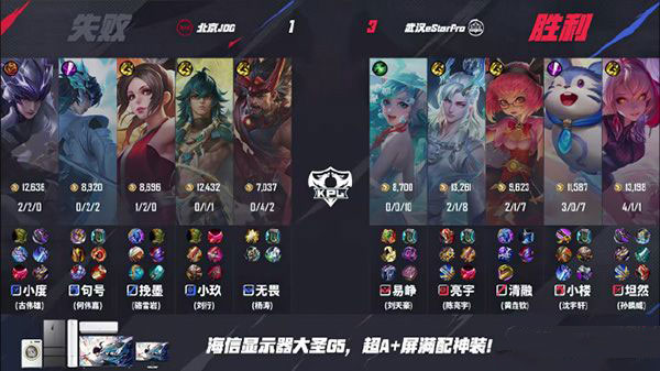 第一局:十五分钟JDG抢先动手试探,eStar顺势拉进压到中高先换出对方野辅后退缓冲,找准机会后eStar出手压掉中塔,一波进攻换掉对方四人后点掉水晶,拿下本小局的胜利!本局MVP为eStarPro坦然 (孙麟威)姬小满!