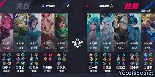 第三局,前中期重庆狼队运营双边兵线破塔,拿到4k经济优势,破掉中一塔,10分半收下暗影暴君。11分钟,重庆狼队带着暗影暴君buff先推下高,经济差扩大至6k。17分钟,双方围绕龙坑爆发团战,重庆狼队一波一换三,破掉中高。21分半风暴龙王团,广州TTG选择直接开团,先带走孙尚香,梦奇关键抢下风暴龙王,广州TTG减员对方多人后,带着龙兵强点水晶,率先拿到赛点。本局MVP为广州TTG萝卜 (陈佳鸿)关羽!
