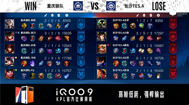 1分33秒长沙TES.A中路击杀娜可露露。2分15秒长沙TES.A拿下暴君。3分36秒重庆狼队发育路击杀孙尚香。5分19秒重庆狼队拿下主宰。5分49秒双方发育路1换1。7分11秒重庆狼队拿下暴君。7分20秒重庆狼队摧毁敌方发育路外塔。7分44秒长沙TES.A发育路击杀周瑜。8分28秒中路团战长沙TES.A击杀李元芳。9分37秒长沙TES.A拿下主宰。10分12秒重庆狼队拿下暗影主宰。10分33秒长沙TES.A拿下暗影暴君。13分43秒重庆狼队野区击杀孙尚香。13分59秒重庆狼队拿下暗影主宰。14分25秒重庆狼队拿下暗影暴君。15分30秒重庆狼队摧毁敌方中路二塔。17分42秒野区团战长沙TES.A击杀猪八戒。18分45秒长沙TES.A摧毁敌方中路外塔。20分30秒中路团战双方2换2。21分55秒重庆狼队拿下风暴龙王并打出1换5。22分29秒重庆狼队摧毁敌方水晶拿下比赛。