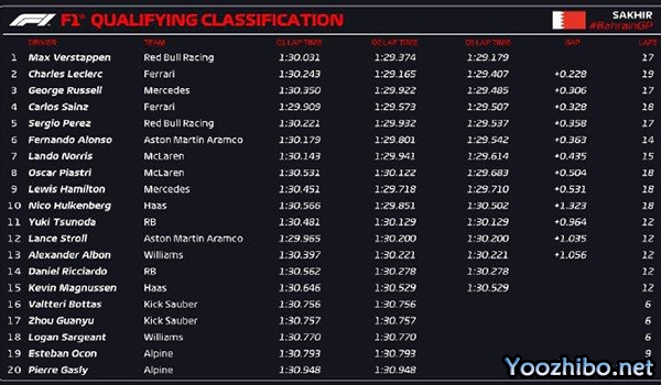 - 【录像】[腾讯]2024F1巴林大奖赛排位赛 圈速信息2024-03-02 10:23:51