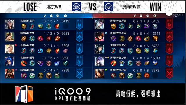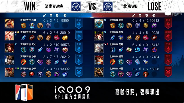 2分44秒,中路团,北京WB打出0换2,随后控下暴君。2分56秒,济南RW侠破掉北京WB上一塔。4分58秒,北京WB中路击杀赵云。5分40秒,北京WB破掉济南RW侠下一塔。7分50秒,北京WB拿下暴君。8分10秒,中路团,济南RW侠打出1换2。10分22秒,济南RW侠控下暗影暴君,随后北京WB镜像控下暗影主宰。11分钟,济南RW侠破掉北京WB下二塔。11分20秒,济南RW侠中路击杀关羽。13分01秒,济南RW侠破掉北京WB上二塔。14分30秒,济南RW侠公孙离野区击杀云樱。15分01秒,济南RW侠拿下暗影暴君,随后击杀盾山。15分35秒,济南RW侠中路击杀孙尚香,随后破掉北京WB中一塔。16分11秒,济南RW侠中路击杀云樱,随后破掉北京WB中二塔。16分28秒,济南RW侠破掉北京WB下路高地塔。16分42秒,济南RW侠控下暗影主宰。17分40秒,上路团,双方打出1换1。19分11秒,济南RW侠拿下暗影暴君。20分55秒,风暴龙王团,北京WB抢下风暴龙王,随后打出2换5团灭济南RW侠。21分50秒,北京WB破掉济南RW侠上路高地塔。23分12秒,中路团,北京WB打出0换2,随后破掉济南RW侠中二塔。23分55秒,济南RW侠高地击杀关羽。24分54秒,风暴龙王团,北京WB打出1换2,济南RW侠赵云抢下风暴龙王。27分43秒,野区团,济南RW侠打出1换4,随后下路一波摧毁水晶拿下本场比赛的胜利。