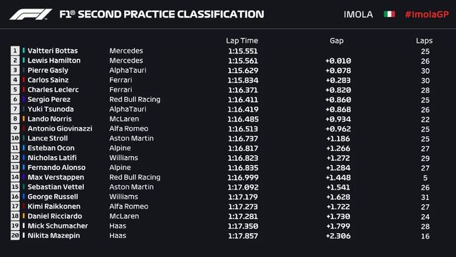 - 【录像】[腾讯]2021F1意大利大奖赛二练 数据录像2021-04-17 10:52:13