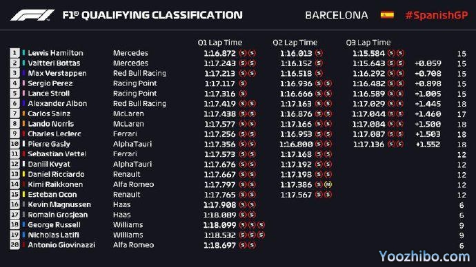 - 【录像】[腾讯]2020F1西班牙大奖赛排位赛 圈速回放2020-08-15 22:40:35