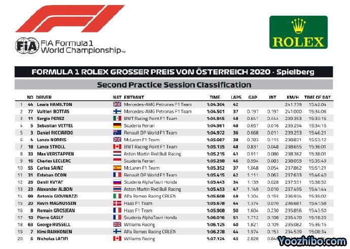 - 【录像】[腾讯]2020F1奥地利大奖赛第二次练习赛 圈速回放2020-07-04 11:26:36