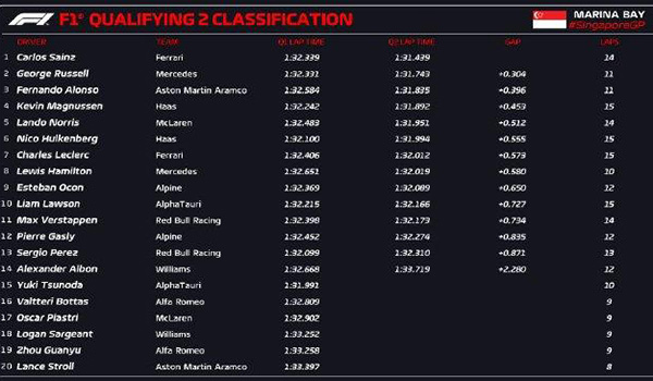 - 【集锦】[腾讯全场集锦]法家争气!塞恩斯新加坡站夺车队赛季首冠 拉塞尔痛失亚军2023-09-18 10:16:34