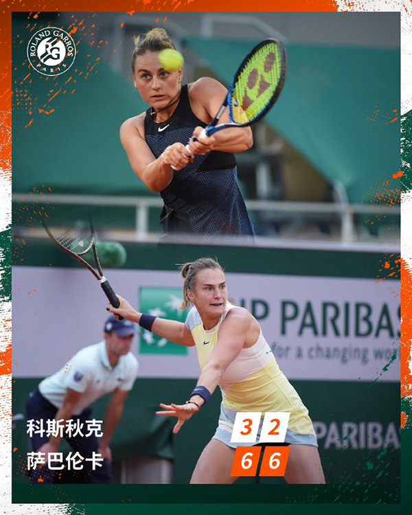 24直播网讯 北京时间5月28日,2023法网正赛首日正式打响,2号种子萨巴伦卡直落两盘击败了科斯秋克,尽管萨巴伦卡在第一盘率先被破发,不过她及时调整状态6-3、6-2晋级下一轮,下一轮她的对手将是白俄罗斯同胞、资格赛选手希玛诺维奇。