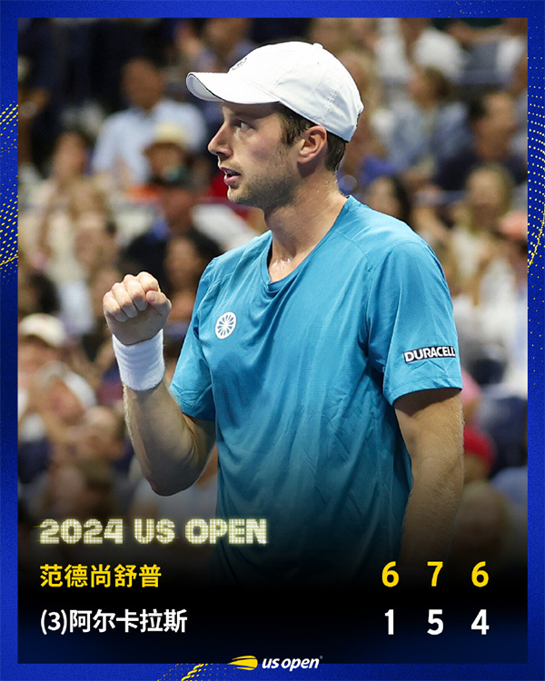 2024美网男单第2轮 阿尔卡拉斯vs范德尚舒尔普 全场录像及集锦