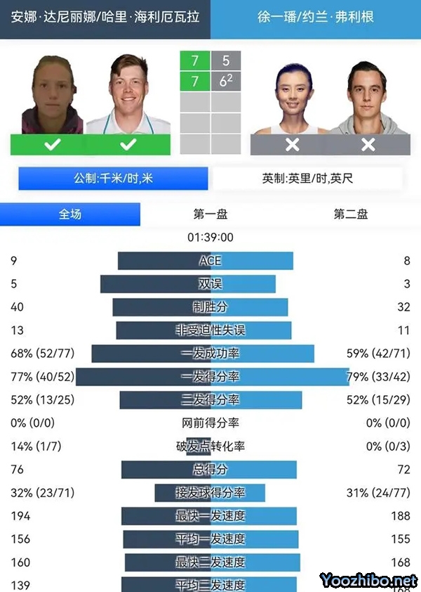 24直播网讯 北京时间9月5日凌晨,美国网球公开赛展开了第八个比赛日的争夺。在混双四分之一决赛中,本赛季温网亚军组合徐一璠/弗利根(比利时),以0:2(5:7、6:7)的接近比分,遗憾不敌达尼丽娜(哈萨克斯坦)/海利厄瓦拉(芬兰)无缘混双半决赛。