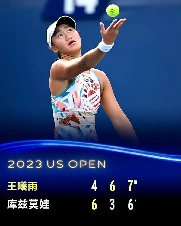 24直播网讯 2023美网女单正赛第一轮,中国名将、金花王曦雨对阵赫伦恰科娃,最终,王曦雨在先丢一盘的情况下连赢两盘大比分2-1逆转翻盘,其中在决胜盘,王曦雨强十10-6险胜!王曦雨连续两年打进美网第二轮(正赛),她没有浪费大礼。