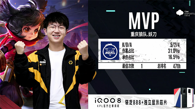重庆狼队选用:马超、阿古朵、李元芳、姜子牙、孙膑