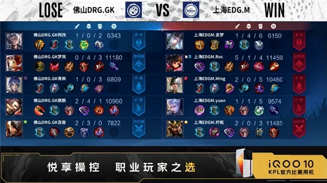 开局上海EDG.M中路三人抢线,双方互入蓝BUFF,佛山DRG.GK守下蓝BUFF并反掉敌方蓝BUFF。1分整上海EDG.M庄周出击杀周瑜拿到一血。1分11秒上海EDG.M对抗路击杀澜。2分41秒上海EDG.M发育路击杀庄周。4分05秒佛山DRG.GK对抗路击杀盘古。5分44秒佛山DRG.GK发育路打出1换2。6分26秒上海EDG.M暴君处击杀沈梦溪。7分34秒佛山DRG.GK拿下主宰。8分34秒佛山DRG.GK摧毁敌方发育路二塔。9分57秒中路团战双方2换2。10分08秒佛山DRG.GK摧毁敌方中路外塔。10分38秒佛山DRG.GK对抗路击杀盘古。11分12秒佛山DRG.GK摧毁敌方中路、对抗路二塔。12分23秒佛山DRG.GK拿下暗影暴君。14分15秒佛山DRG.GK拿下暗影主宰。14分32秒佛山DRG.GK发育路击杀盘古。15分02秒佛山DRG.GK摧毁敌方三路高地塔。16分16秒高地团战上海EDG.M打出0换4。17分整上海EDG.M摧毁敌方中路高地塔并拿下暗影暴君。18分18秒佛山DRG.GK拿下暗影主宰。20分40秒佛山DRG.GK拿下风暴龙王。24分04秒佛山DRG.GK拿下风暴龙王。25分45秒佛山DRG.GK摧毁敌方水晶拿下比赛。
