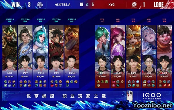 十分半,XYG击杀苏烈,但顾兴赵怀真帮助队伍拿到暗影暴君。十三分半,长沙TES.A直接带着龙兵强越下路高地,靖风关羽切后一刀双杀,长沙TES.A势不可当强点水晶,成功拿下比赛!