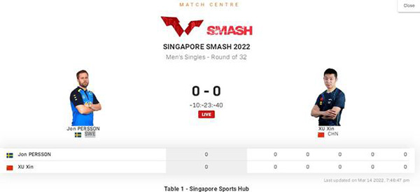 综合直播乒乓球 2022WTT新加坡大满贯男单第2轮 佩尔森vs许昕 全场录像回放