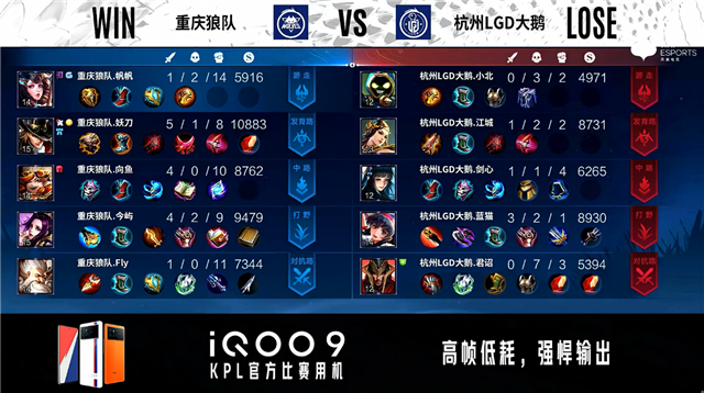 重庆狼队选用:梦奇、橘右京、周瑜、狄仁杰、张飞
