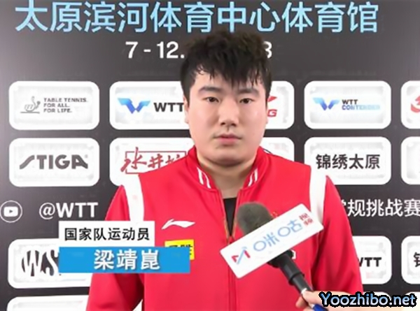 24直播网讯北京时间11月11日,2023WTT常规挑战赛太原站男单1/4决赛向鹏vs梁靖崑,国乒队员梁靖崑以3-2险胜队友向鹏,晋级下一轮。比分为9-11、11-9、11-4、8-11、11-8。