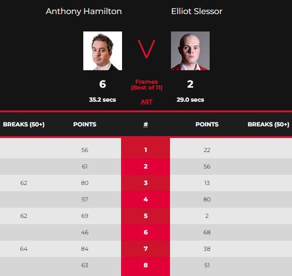 2022世锦赛资格赛第3轮 安东尼-汉密尔顿vs艾利特-斯莱瑟 全场录像回放
