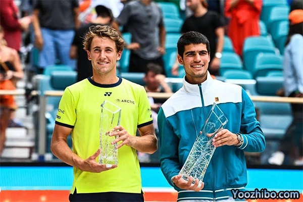 24直播网讯 北京时间4月4日,2022年ATP1000迈阿密公开赛结束男单决赛争夺。18岁的西班牙小将阿尔卡拉斯,克服首盘先被破发的被动,以7-5/6-4两盘击败赛会6号种子挪威一哥鲁德,巡回赛三场男单决赛保持全胜战绩,职业生涯首夺ATP1000级别大师赛冠军,并打破德约科维奇的纪录成为迈阿密公开赛最年轻的冠军球员。
