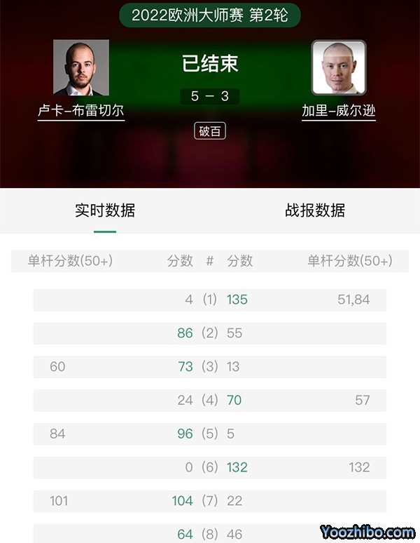 2022年2月22日凌晨,2022斯诺克欧洲大师赛,比利时名将卢卡-布雷切尔迎战英格兰劲敌加里-威尔逊上演强强对话,双方3-3之后,布雷切尔连胜两局,以5-3获胜晋级32强。