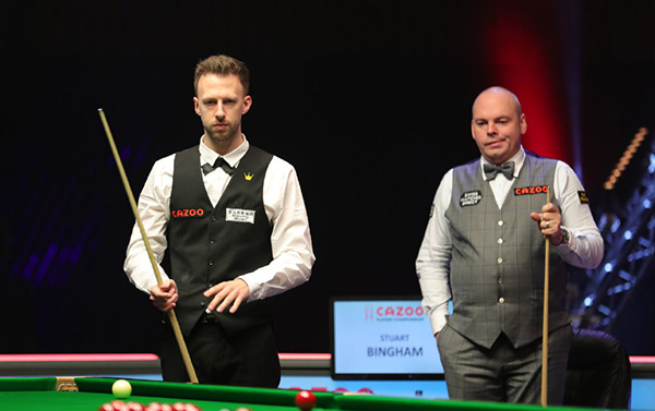 在首局比赛中,宾汉姆以56:10的比分获胜取得1-0的领先,随后又是凭借单杆93分再下一城取得2-0的领先优势。紧接着,特鲁姆普凭借单杆81分、105分和76分的强势表现连下三局从而以3-2的比分反超宾汉姆取得领先。第六局,宾汉姆上手后一度有冲击147分的机会,结果止步113分,不过还是追至3-3。