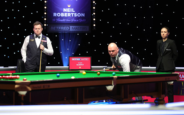 第一局,两人失误不断,零敲碎打上手,宾汉姆蓝球失误45-60错失逆转机会,墨菲薄进蓝球65-45超分拿下第一局。第二局,宾汉姆长台上手,利用蓝球炸开红球堆,局面一片大好,宾汉姆单杆133清台。双方1-1。第三局,墨菲单杆51分以65-24超分,宾汉姆追回8分做斯诺克,墨菲抓住机会单杆20分拿下。第四局,墨菲三次上手拿下58分,宾汉姆单杆32分,宾汉姆第二次上手机会,凭借精彩翻袋打进粉球最终单杆35分清台。双方2-2。