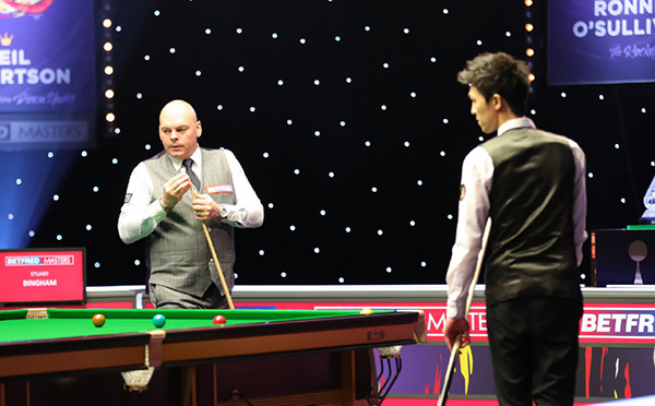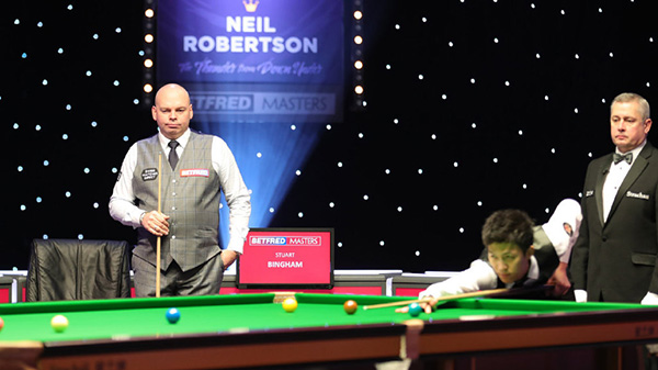 24直播网讯 北京时间1月12日凌晨,2021年斯诺克大师赛继续在米尔顿-凯恩斯进行,卫冕冠军宾汉姆打出一杆破百和四杆60+,在错过3个赛点后,还是以6-4淘汰首次打进大师赛的泰国快枪手塔猜亚。1/4决赛,宾汉姆的对手将是墨菲,后者同样以6-4淘汰打出两杆破百的马克-威廉姆斯。
