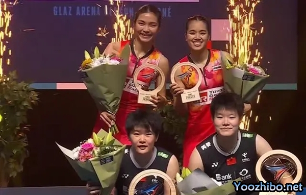 24直播网讯北京时间10月29日,法国羽毛球公开赛决赛正在进行中,中国选手大爆发,包揽了结束的三项比赛的冠军。女双比赛中,刘圣书/谭宁以26-24、21- 击败了泰国名将宗空潘/拉温达,夺得冠军。