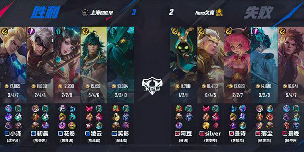 第二局,EDGM每次打架人头都是占优,但是整体的局面优势还是在Hero手上;Hero这边马超的经济很高,再加上嬴政的消耗,EDGM很难打;最后一波Hero完成二换四,景诗的嬴政拿到双杀,Hero扳回一局!本局MVP为Hero久竞_景诗s (李知杰)嬴政!