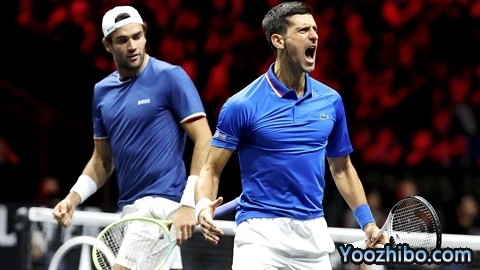 24直播网讯 北京时间09月25日,第五届拉沃尔杯的比赛,在英国伦敦的O2体育场进入到第二个比赛日的争夺。男双比赛当中,德约科维奇搭档贝雷蒂尼,7-5、6-2击败了德米纳尔/索克,帮助欧洲队在第二个比赛日过后8-4领先。
