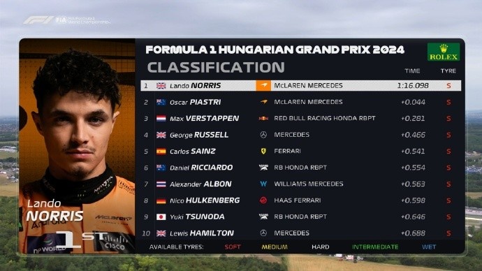 - 【录像】[腾讯]2024F1匈牙利大奖赛第三次练习赛 圈速2024-07-21 02:24:34