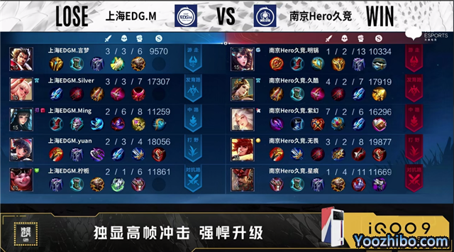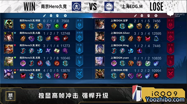 开局双方多路频繁换线。3分08秒南京Hero久竞拿下暴君,团战南京Hero打出1换2。4分04秒对抗路团双方2换2。5分21秒上海EDG.M拿下先知主宰。6分53秒南京Hero久竞对抗路击杀廉颇。7分12秒上海EDG.M中路击杀嫦娥。7分34秒上海EDG.M拿下暴君。8分钟上海EDG.M先后摧毁敌方发育路、中路外塔。8分29秒上海EDG.M发育路击杀裴擒虎。9分40秒上海EDG.M拿下主宰。9分55秒野区团上海EDG.M打出0换2。10分23秒上海EDG.M拿下暗影主宰。11分26秒上海EDG.M摧毁敌方发育路二塔。11分50秒上海EDG.M摧毁敌方发育路高地塔。12分22秒上海EDG.M拿下暗影暴君。13分34秒上海EDG.M中路击杀廉颇,随后摧毁敌方中路高地塔。14分09秒上海EDG.M拿下暗影主宰。14分35秒南京Hero久竞中路击杀公孙离。15分29秒南京Hero久竞摧毁敌方发育路外塔。16分24秒南京Hero久竞野区击杀张飞。16分46秒南京Hero久竞拿下暗影暴君。17分10秒野区团南京Hero久竞打出1换3。18分10秒南京Hero久竞拿下暗影主宰。19分02秒南京Hero摧毁敌方对抗路二塔。20分41秒南京Hero久竞拿下风暴龙王,随后南京Hero久竞野区击杀西施。21分30秒南京Hero摧毁敌方中路高地塔。22分16秒南京Hero久竞摧毁敌方对抗路高地塔。23分30秒发育路团南京Hero打出2换5团灭敌方。24分02秒南京Hero摧毁水晶拿下比赛。