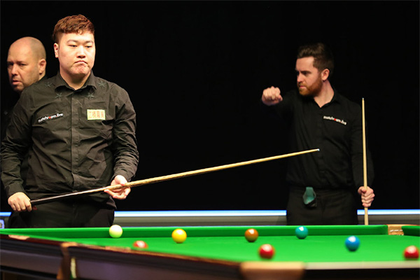 第三局,又是琼斯先得分,颜丙涛拿到1分后中断,琼斯又上手,直接完成了超分,单杆109分+清台,大分2-1领先颜丙涛。第四局,颜丙涛上手连续拿分拉开分差,49分后中断。琼斯61-49完成单局大逆转,3-1拿到了赛点。第五局,颜丙涛28-4又出现低级失误,琼斯再上手拿到42分后转入防守,但颜丙涛出现了白球摔袋,琼斯没有再给机会,顺利拿下。大分4-1淘汰颜丙涛。