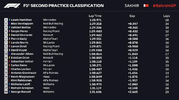 - 【录像】[腾讯] F1巴林大奖赛第二次练习赛 圈速2020-11-28 01:58:26
