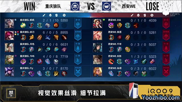 开局重庆狼队关羽入侵敌方蓝野区。3分26秒西安WE拿下暴君。3分59秒西安WE对抗路击杀关羽拿下一血。5分33秒西安WE摧毁敌方发育路外塔。5分36秒重庆狼队拿下先知主宰。5分51秒重庆狼队摧毁敌方对抗路外塔。6分25秒重庆狼队发育路击杀沈梦溪。8分01秒西安WE拿下暴君。8分46秒重庆狼队摧毁敌方发育路外塔。9分13秒重庆狼队野区击杀马可波罗。10分钟重庆狼队摧毁敌方中路外塔。10分29秒重庆狼队拿下暗影暴君。11分09秒重庆狼队拿下暗影主宰。11分37秒重庆狼队中路击杀沈梦溪。11分58秒野区团重庆狼队打出1换3。13分05秒重庆狼队野区0换2。13分38秒重庆狼队摧毁敌方中路二塔。14分07秒重庆狼队摧毁敌方发育路高地塔。14分43秒重庆狼队拿下暗影暴君。15分08秒暗影主宰处团战重庆狼队打出1换5团灭西安WE。15分51秒重庆狼队摧毁水晶拿下比赛。