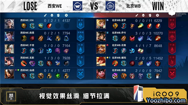开局西安WE狄仁杰中路抢线。2分09秒北京WB拿下主宰。2分38秒北京WB野区打出0换2。3分42秒北京WB中路击杀夏侯惇。4分01秒北京WB拿下暴君。5分01秒暴君处团战双方1换1。6分25秒北京WB拿下主宰。7分49秒北京WB摧毁敌方对抗路二塔。8分35秒北京WB摧毁敌方中路外塔。9分32秒北京WB发育路打出0换2。10分42秒北京WB拿下暗影暴君。10分55秒北京WB对抗路击杀娜可露露。11分15秒北京WB摧毁敌方中路二塔。12分17秒北京WB高地击杀狄仁杰。12分28秒北京WB摧毁敌方对抗路、中路高地塔。12分56秒北京WB摧毁敌方水晶拿下比赛。