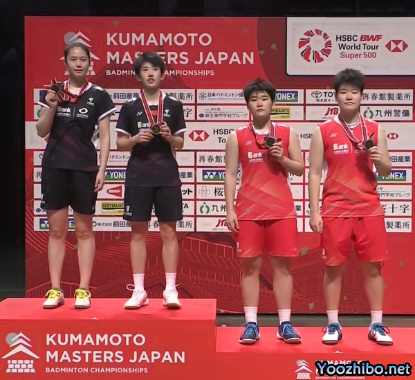 24直播网讯北京时间11月19日,日本大师赛决赛正在进行中,刚刚结束的女双决赛中,郑雨/张殊贤和谭宁/刘圣书大战3局,郑雨/张殊贤2-1逆转夺冠。比分为12-21、21-12、21-17。