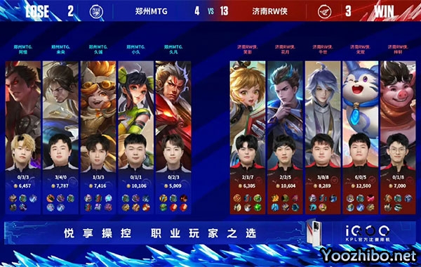 十分半,济南RW侠控下暗影暴君,随后团战爆发,梓轩亚连直冲后排,配合无双镜的伤害击杀白起,并造成对方多人残血。十三分钟济南RW侠先在团战中击杀鲁班七号,顺势向高地施压,造成郑州MTG持续减员。十四分半,济南RW侠拿到暗影暴君,不断拉开经济差距。十六分半,济南RW带着龙兵强压高地,将兵线带入水晶,成功获得比赛胜利。