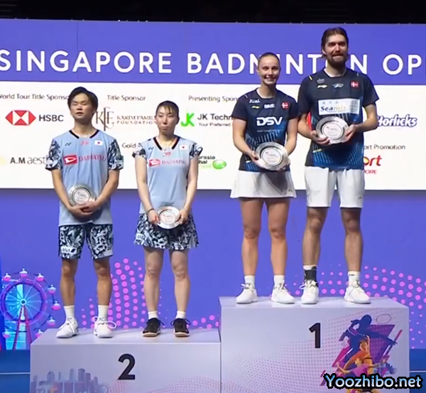 24直播网讯北京时间06月11日,2023新加坡羽毛球公开赛混双决赛马蒂亚斯/博尔vs渡边勇大/东野有纱,马蒂亚斯/博尔以21-14/20-22/21-16击败渡边勇大/东野有纱 ,丹麦组合获得冠军!