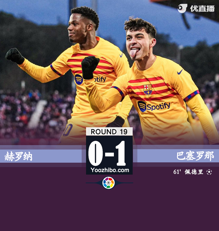 24直播网讯 北京时间1月28日23:15,西甲第19轮,赫罗纳vs巴萨。上半场,登贝莱第25分钟伤退,佩德里替补登场第100次为球队出战,法蒂染黄;下半场,佩德里补射打破僵局,双方此后均未进球。最终,巴萨1-0力克赫罗纳,多赛一场6分领跑。