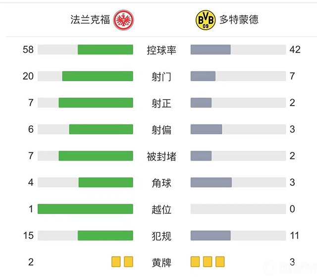全场比赛结束,多特2-1法兰克福。