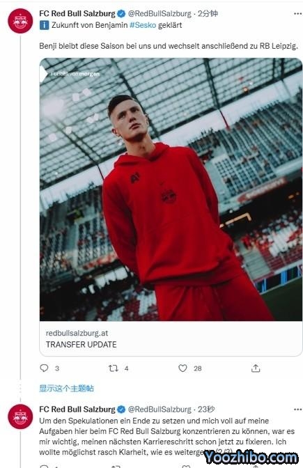 此前,英超豪门曼联也在关注塞斯科,红魔甚至愿意出价超过5000万欧元,但因为萨尔茨堡红牛和莱比锡红牛队的特殊关系,最终德甲劲旅击败曼联,签下这位炙手可热的“新哈兰德”。