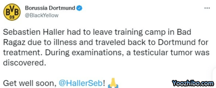 多特官方:新援阿莱检查出睾丸肿瘤,将接受治疗