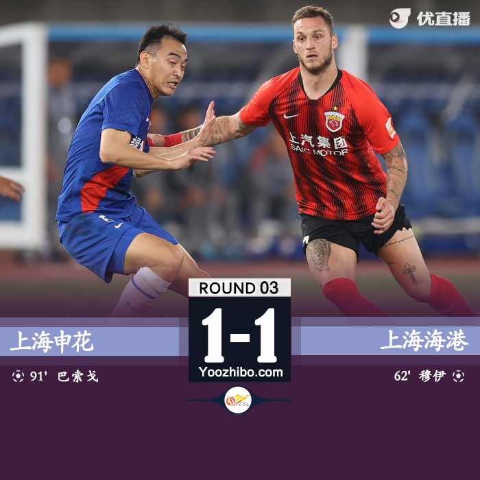 24直播网5月5日讯 北京时间5月5日晚8点,2021赛季中超联赛苏州赛区第三轮展开一场焦点大战,上海申花与上海海港在苏州体育中心迎来德比大战。上半场,双方火药味十足,场上拼抢也十分激烈,但威胁进攻都不多。下半场,穆伊禁区外围精彩世界波打破僵局,随后,申花莫雷诺和巴索戈都错失单刀良机。第82分钟,买提江凶狠铲抢于汉超被直红罚下。第90分钟,申花获得点球,巴索戈一蹴而就为申花扳平比分。最终,十人作战的上海海港1-1与上海申花战平,两队本赛季继续保持不败。