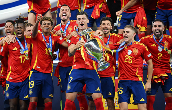 来源:24直播网07-17 17:3624直播网讯 北京时间7月16日晚,欧洲杯官方最佳阵容正式出炉。冠军西班牙多达6人入选,亚军英格兰仅沃克1人。此外,打进4强的法国2人入围,瑞士和德国各1人,另外1支4强队荷兰则无人入围。