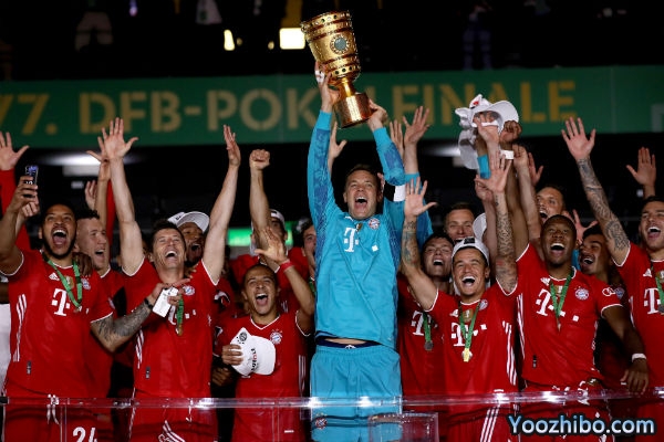 北京时间7月5日凌晨2时,2019-20赛季德国杯决赛拉开帷幕,在柏林奥林匹克球场,勒沃库森迎战本赛季德甲冠军拜仁慕尼黑。上半时阿拉巴任意球首开纪录,基米希助攻格纳布里破门。下半时诺伊尔和佩里西奇先后助攻莱万梅开二度,斯文-本德扳回一球,补时阶段哈弗茨点球破门。最终,拜仁慕尼黑4-2战胜勒沃库森,拜仁获得联赛和德国杯双冠王。
