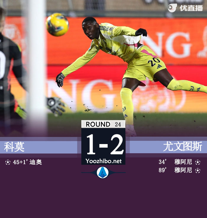 24直播网讯 北京时间2月8日凌晨3:45,2024-25赛季意甲联赛第24轮,尤文图斯在西尼加利亚球场客战科莫。上半场冈萨雷斯助攻穆阿尼破门,迪奥扳平比分,尤文图斯暂1-1科莫;下半场加蒂造点,穆阿尼点射锁定胜局,最终尤文图斯2-1科莫,收获联赛两连胜,先赛一场积分来到43分,暂时升至第四。