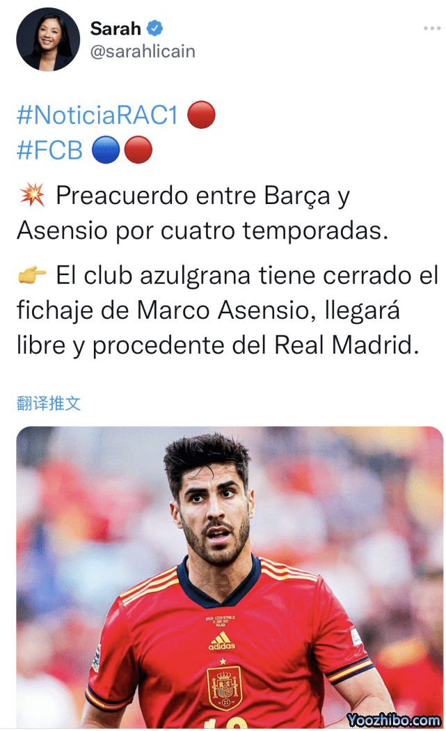 来源:24直播网09-26 18:3124直播网09月26日晚,西班牙知名媒体RCA1记者Sarah Li Cain扔出了一则重量级消息,效力于皇马的26岁“王储”阿森西奥已经与巴萨完成了签约。双方签下了一份为期4个赛季的预先协议。由于与皇马的合同只剩1年,阿森西奥将在明夏以自由球员的身份加盟死敌。