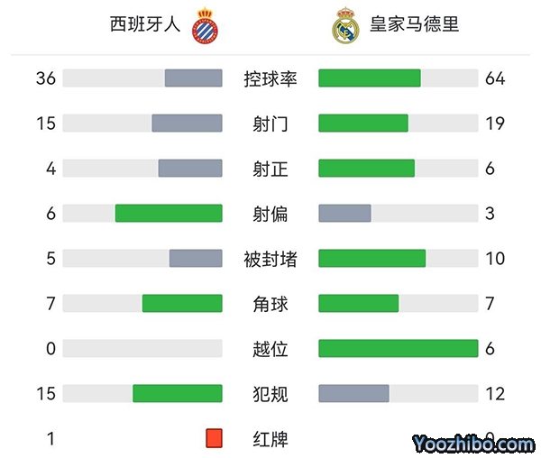 全场比赛结束,最终皇马3-1西班牙人。
