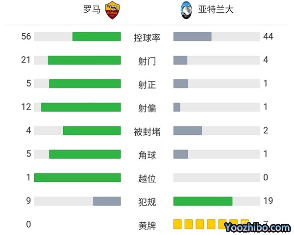 全场比赛结束,罗马0-1不敌亚特兰大。